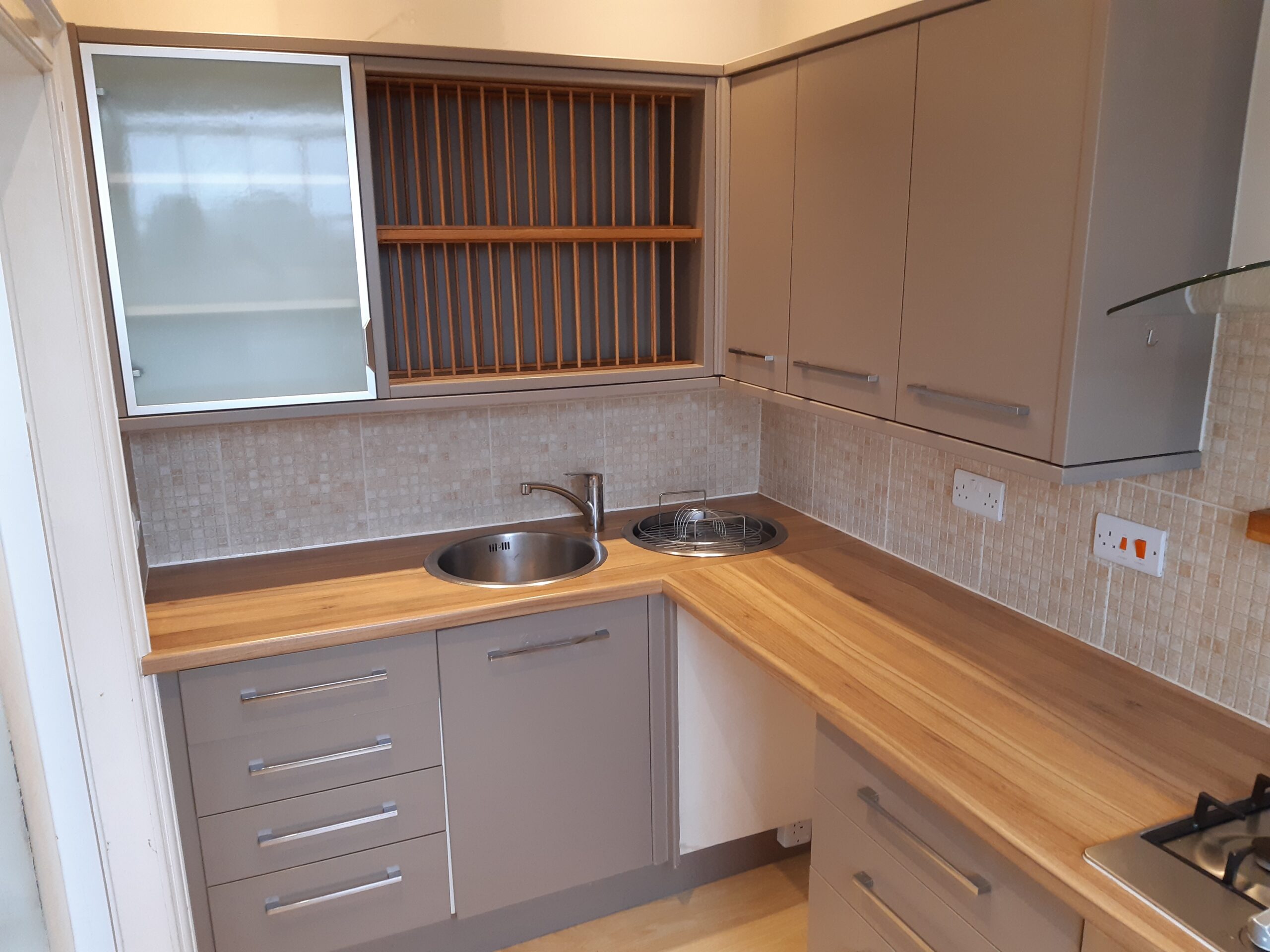 Tiled splash backs to above base units.
