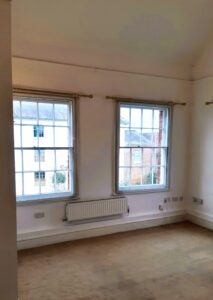 LOUNGE/DINING ROOM – A spacious and light room with sash windows overlooking the front and side, TV and telephone points, radiator.