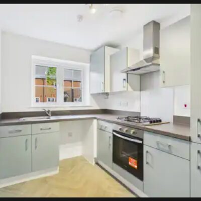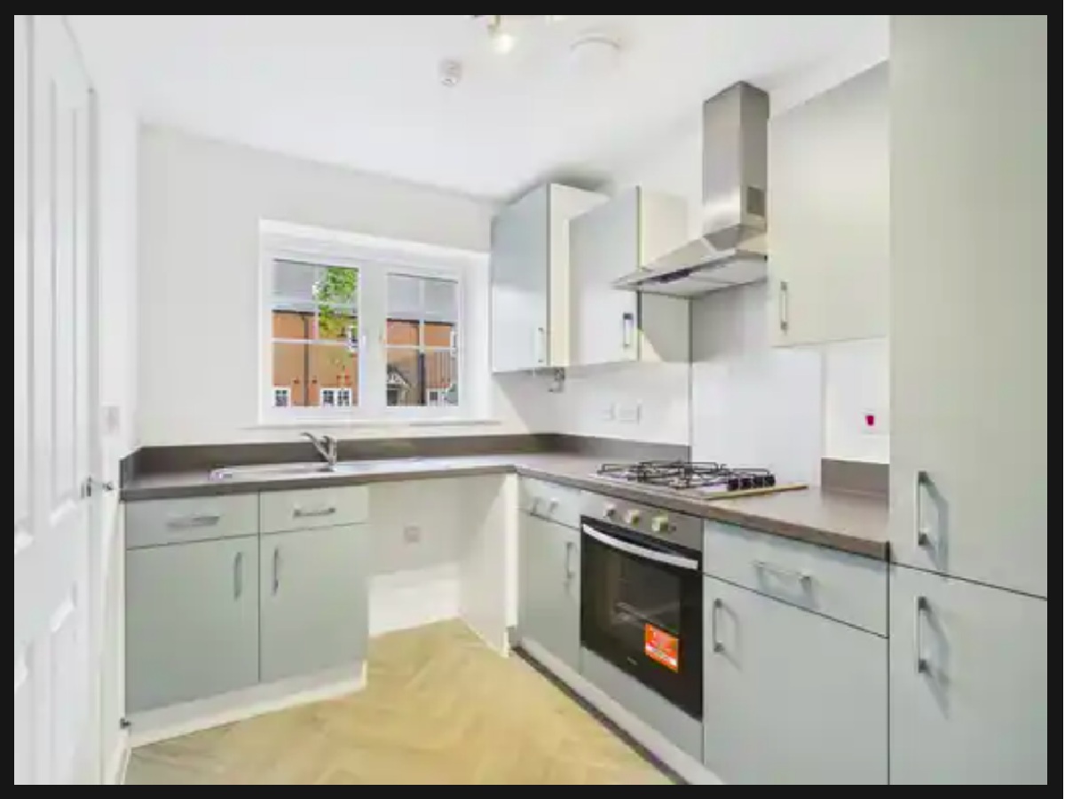 2-bedroom, End of Terrrace. Modern fitted kitchen with single built-in fan oven, a 4-ring gas hob and extractor hood.. Kitchen/diner. Living room with patio doors. Vinyl flooring to kitchen, family bathroom/WC. Private turfed and fenced rear garden. 2 off-road parking spaces (See restrictions). 1 x outdoor charging point. Solar panels. NHBC-New build warranty. Gross internal approx. floor area. 71sqm.
